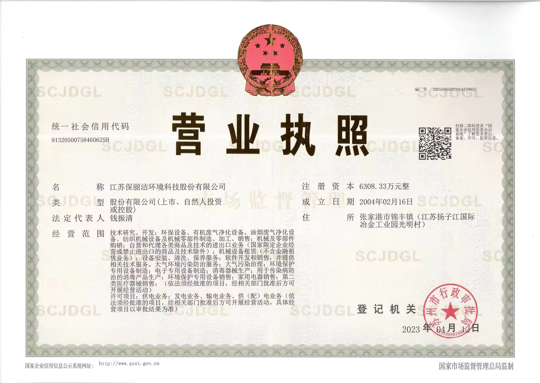| 單位名稱 | 江蘇保麗潔環境科技股份有限公司 |
