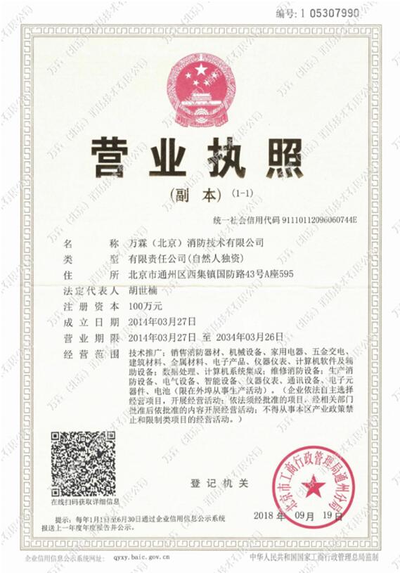 萬霖消防技術有限公司,成立于2014年3月。公司專業從事消防智能產品的研發及生產,立足于智能火災報警系統、智能壓力液位系統、智能廚房系統、智能電氣監控系統,消防主機遠程報警系統等,作為智慧消防領域的一站式服務商,從家庭的安全管理精細化到城市消防聯網系統解決方案,到報警設備廠家智慧平臺的搭建,及遠程監管服務,借助和推廣大數據、云計算、物聯網、地理信息等信息技術,創新安全新模式,實施智能監管,智能操作、智能報警、智能管理,是一家創新型高科技企業。總部陸續榮獲3A信用企業,質量信得過產品企業,高新技術企業。獨立無線WIFI感煙探測器已取得發明專利證書 ,實用新型專利證書。外觀設計專利證書等。公司產品在政采項目應用中得到了多方領導的認可,并且成功中標國家級項目。設備研發中心擁有多項自主研發設備并有自主知識產權產品。
