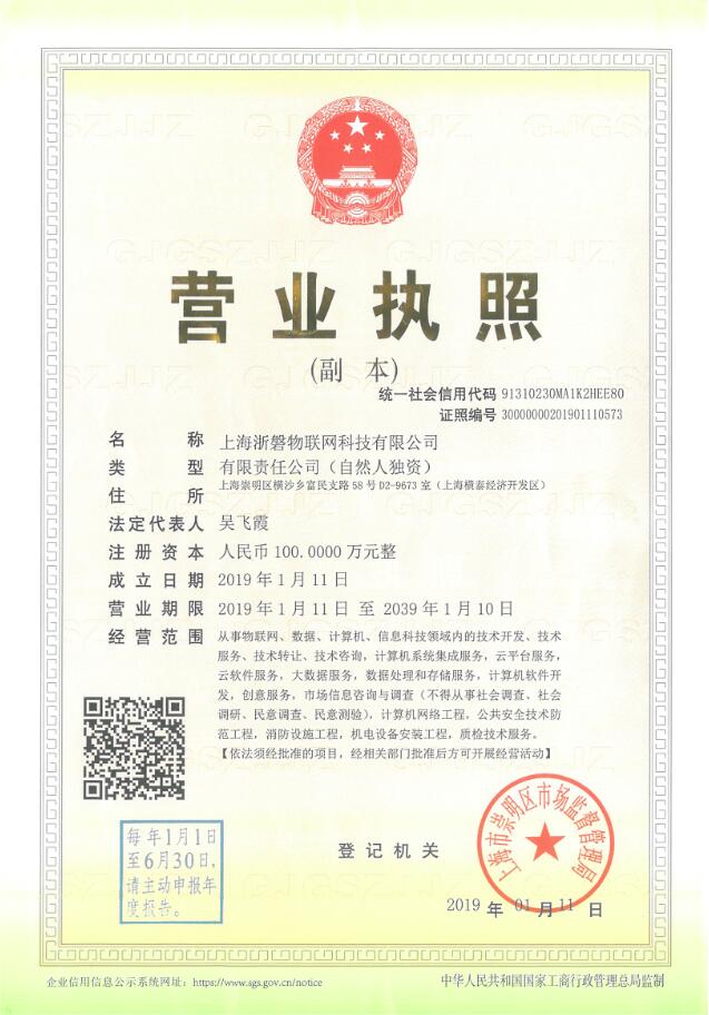 | 單位名稱 | 上海浙磐物聯網科技有限公司 |
