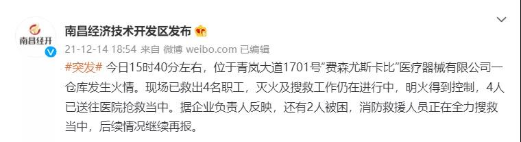 南昌一公司倉庫大火已致5人遇難